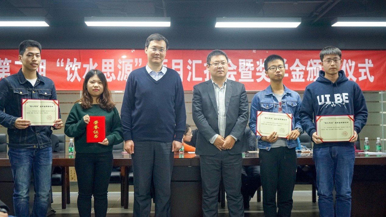 接着,老师和校友导师们为参加“饮水思源”项目的同学们颁发了奖学金荣誉证书,并合影留念。
