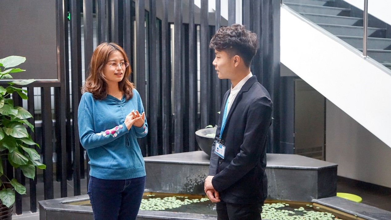 仪式结束后,池轶婷校友也接受了校友志愿者协会的采访,池轶婷校友目前供职于北京时代融聚教育咨询有限公司,她表示,“饮水思源”项目给不仅给在校生提供了帮助,也给校友们提供了一个一起成长、共同进取的机会。作为关注校友工作的热心校友,池轶婷不仅针对校友会工作,在校友资源分类、在校生校友意识的培养以及“饮水思源,反哺母校”途径的宣传等方面给出了建议,也对在校生提出了期许,希望他们可以在学习知识的同时,重视逻辑思维能力和可迁移能力的培养。