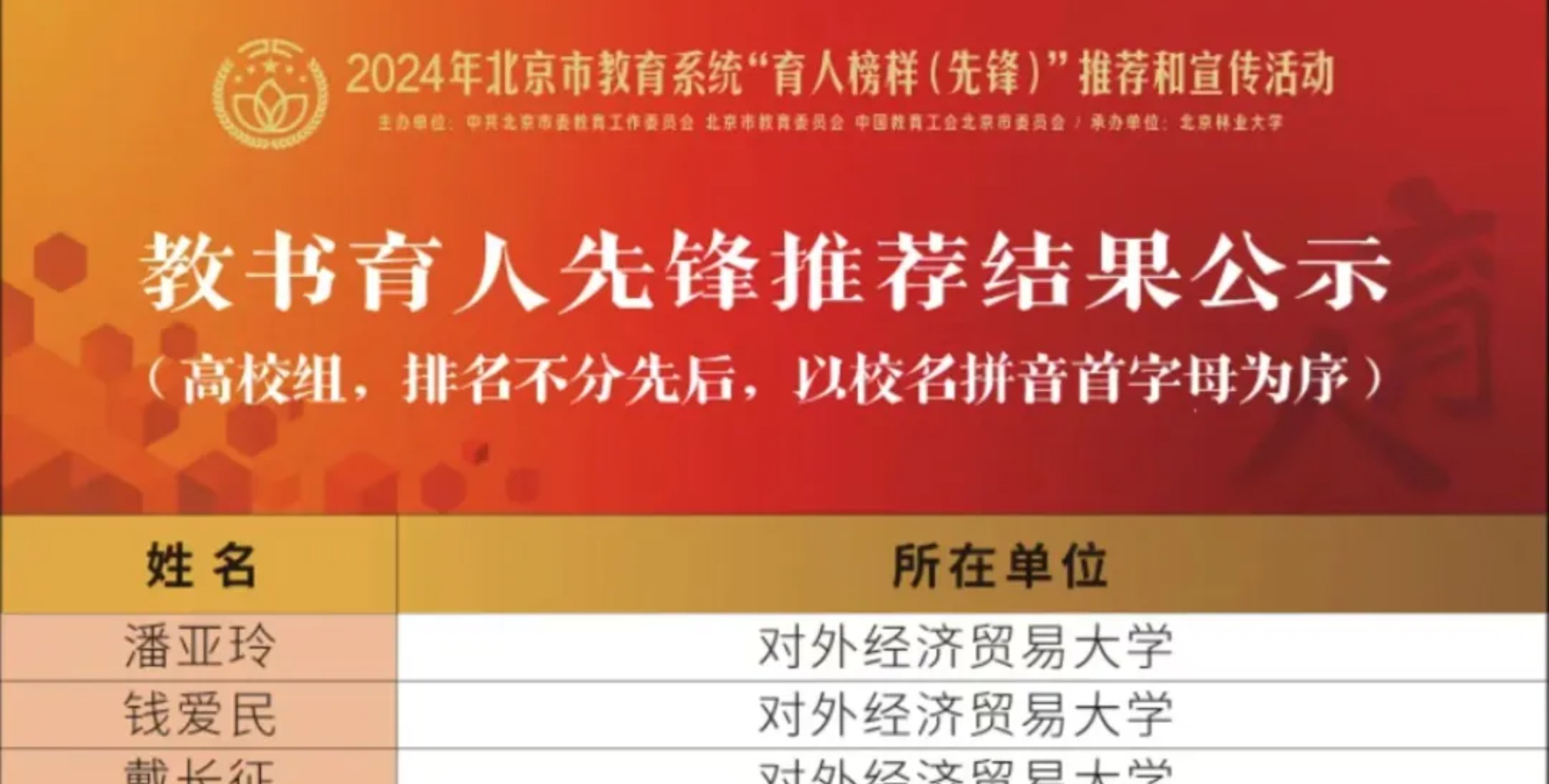 贸大要闻丨祝贺!我校7人荣获北京市教育系统“育人先锋”